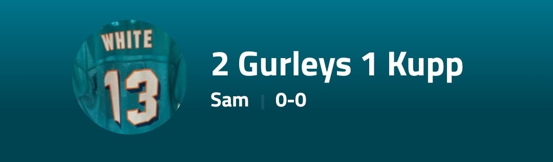 First of all, a repeat of last years Superbowl sees 2 Gurleys 1 Kupp Take on the Sandymoor Ravens. Both teams coming off big wins last week mean that this one will be hotly contested- the ravens go in as the early favourite with GM’s beloved fins on a BYE week causing a few selection headaches, but it is sure to be a high scoring affair which will be pivotal in deciding who makes the post season.